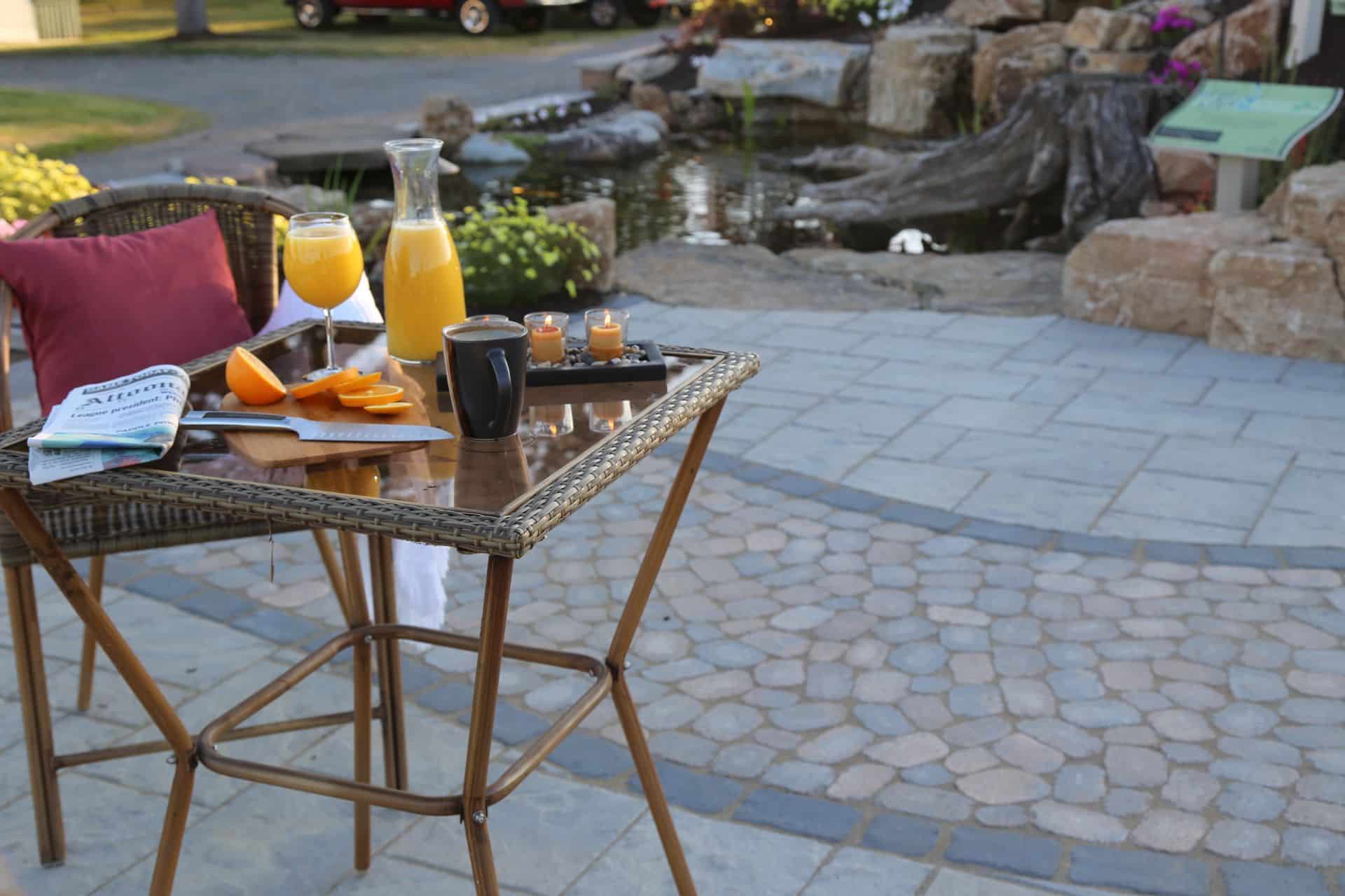 Start your day off right with an extra breath of fresh air outside and have your cup of coffee out by the splashing waterfalls. You’ll feel so much better when you’re not in the rat race every waking moment.