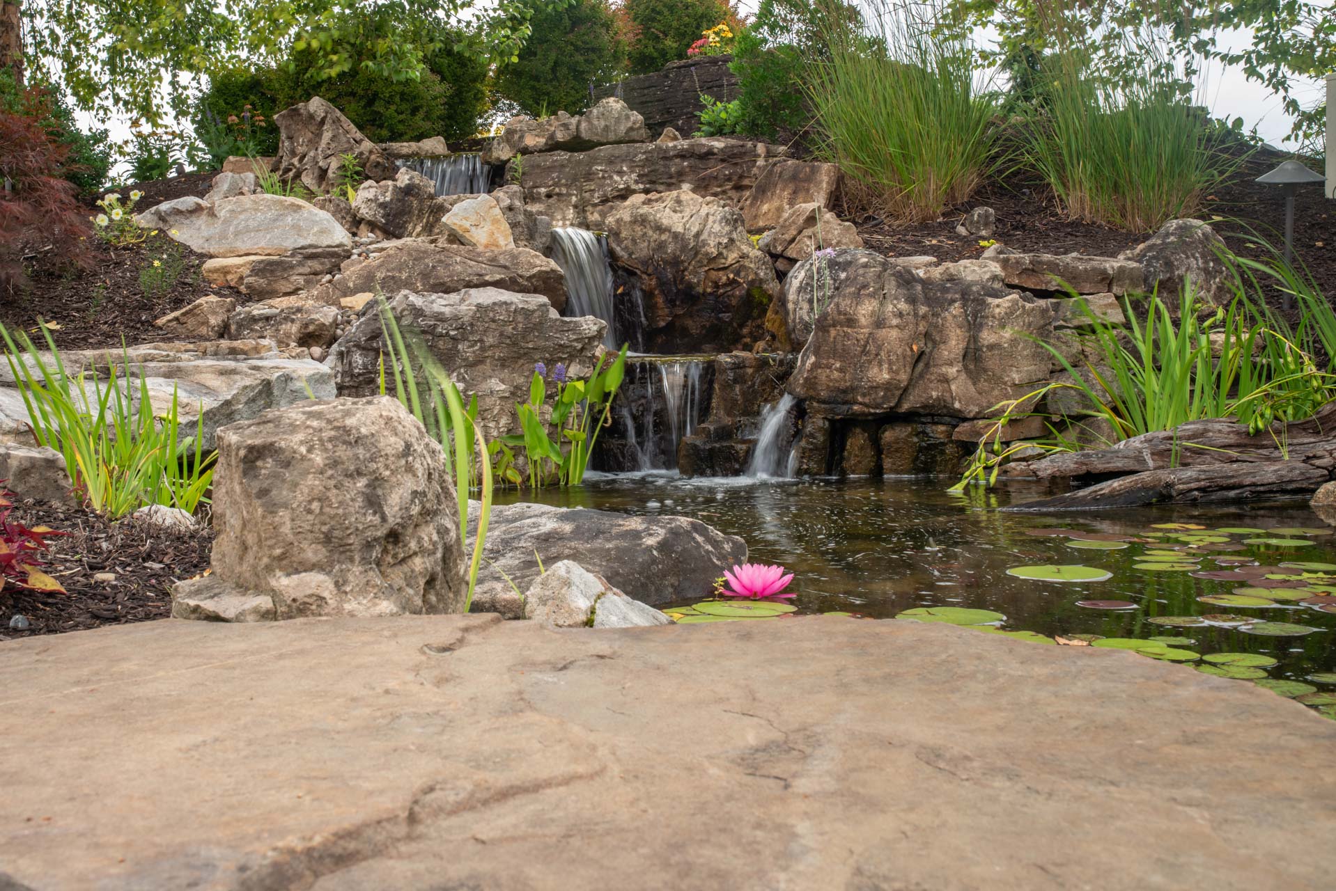 Landscaped Water Feature with Pond and Patio in State College, PA